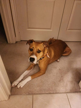 Appleton is just a really happy-go-lucky boy. He has been good with most other dogs, we have not “tested” him with other dogs but he lived with two and he is not reactive out on walks. He does pull a little in the beginning but calms down significantly after a short time. Mr. Appleton is also fine with cats.